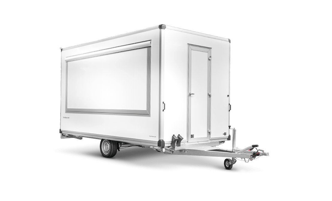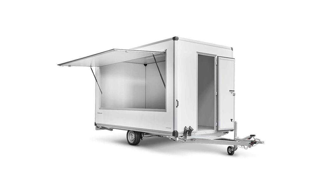 Our catering trailers make selling so much easier for you in many respects. Access to your catering trailer is via a door at the front. High-quality lighting has been provided in galvanised fittings. The body has a polyurethane core and is coated with galvanised, powder-coated steel plate on both sides. The well-designed flap is on the right side and has a hinged cover with rain protection. This means that your customers are always under cover. Gas springs help you open the flap. Do you have very particular requirements for your catering trailer? Find out more about our comprehensive range of accessories.