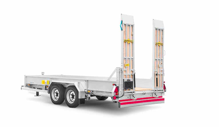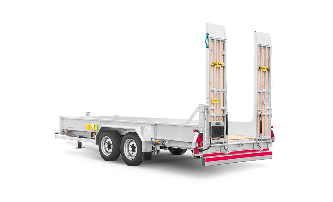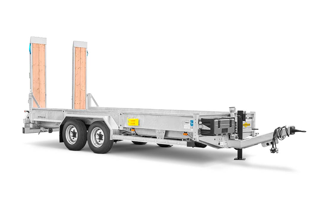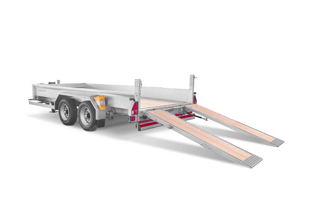 The big brother of the HS tandem flatbed trailer above 6.5 t allows for an even higher load capacity. Both trailers offer the same functionality. The standard lashing options integrated in the loading area guarantee optimal loadsecuring. There is also a variant available with a weight of 8.9 tons (HS 895020 BS).