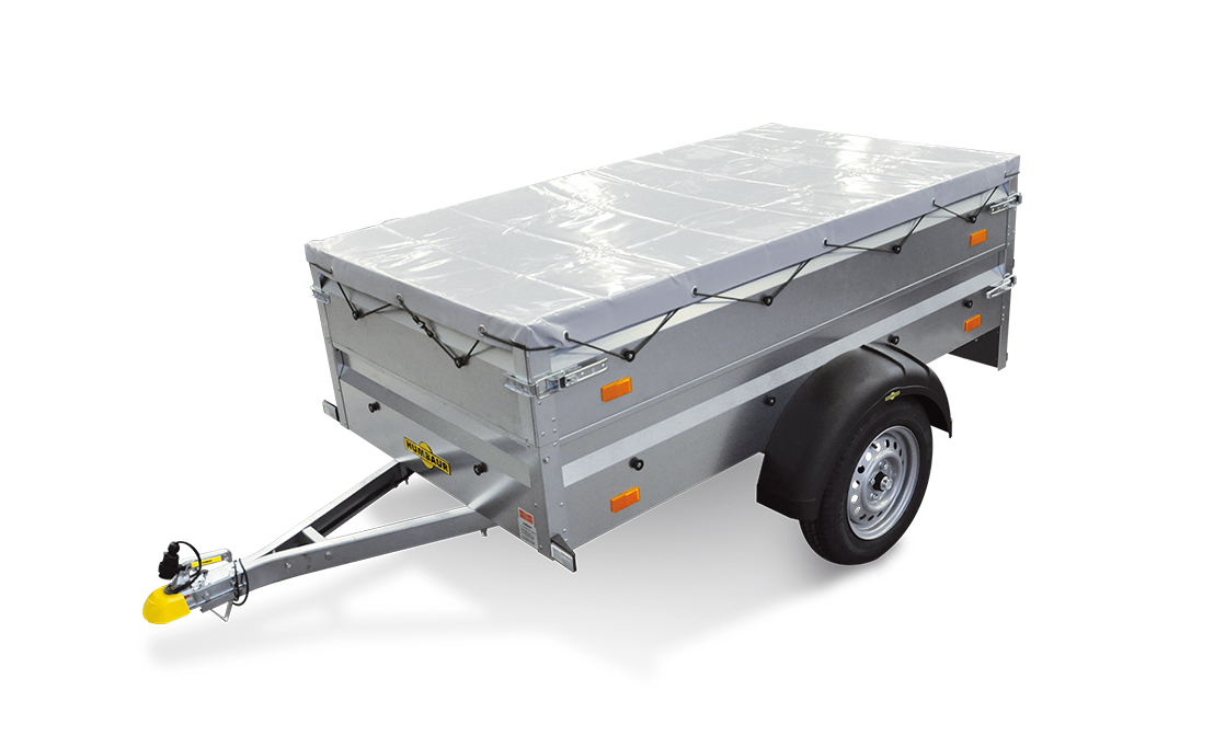 Its non-slip waterproof wooden floor and sturdy design make the Steely flatbed trailer a convincing proposal in the garden and on the building site. Elegant toggle-type fasteners keep the tailgate safely closed. Do you need a flatbed or raised tarpaulin? Fastening buttons are already pre-installed - you can retrofit one at any time.