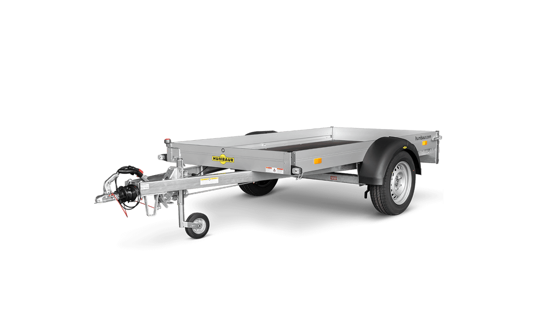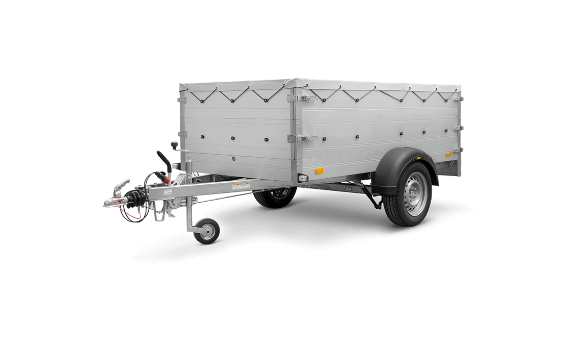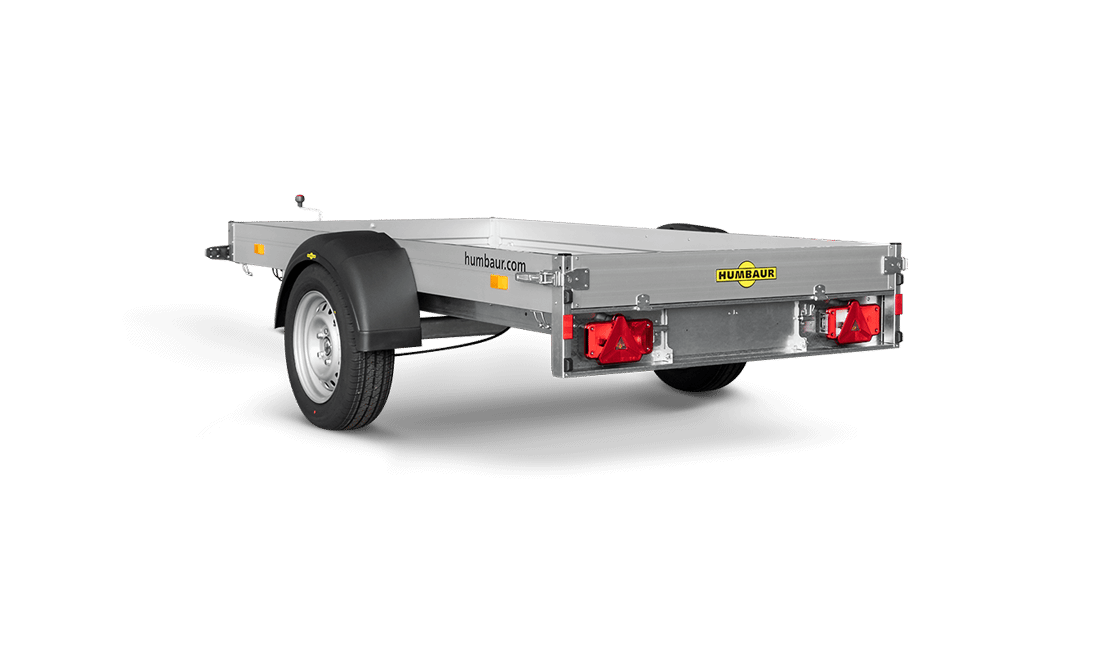 The HA Multitransporter is a car-trailer suitable for a wide range of applications. The box trailer has a fixed front wall and side walls made of anodised, double-walled aluminium profiles with a height of 150 mm. The tailgate is equipped with toggle-type fasteners. The loading area of the flatbed trailer measures 2510 x 1310 mm. Three pairs of tie-down hoops are recessed into the side walls for securing the load. The tensile force is 400 kg per hoop. The HA Multitransporter can be equipped in a variety of ways thanks to features such as its corner stanchions with insert options, which can be used to fit additional side-wall elements 30 cm in size. A flat cover and an aluminium cover are available as accessories to provide protection from above. A motorcycle rail can also be retrofitted as an accessory and the option to fit loading planks is planned as a new standard feature of the series. The 15-mm thick, weather-resistant floor plate is sufficiently robust for any application. The HA Multitransporter is available in two variants: without a brake, with a permissible maximum weight of 750 kg, and with a brake and a permissible maximum weight of 1300 kg. The version with a brake includes a jockey wheel as standard.