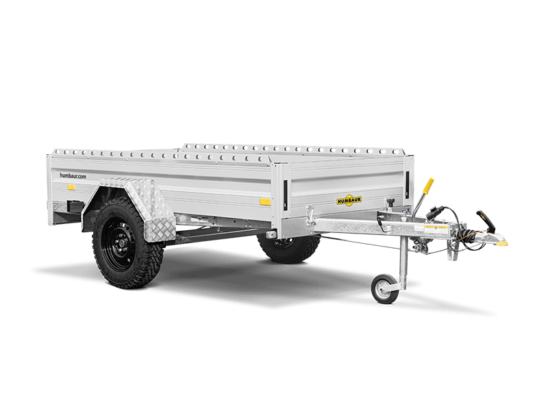 Small, nimble, versatile: The Steely DK is more than just an introduction to the world of Humbaur transportation solutions - the car trailer is also a real space-saver thanks to its folding drawbar. As it can be positioned vertically with the drawbar folded down, the trailer can be stored against the garage wall, for example, and easily accessed at any time. The Steely DK is a practical transportation companion for personal use that will help you move almost anything - from tools and building materials to garden waste, crates and boxes. The trailer can also be fitted with a side plate extension, H-frame, flat cover or tarpaulin and frame, making light work of the most challenging transportation scenarios. Inside the trailer, four tie rings on the side walls can be used to secure cargo. The side walls are also equipped with pre-assembled fastening buttons for attaching tarpaulins.