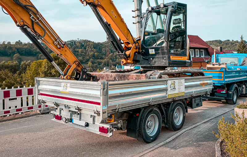 Der HTK ist ein klassischer Dreiseitenkipper. Damit eignet er sich ideal für den Transport von Schüttgütern wie Kies, Sand oder Erde. Dabei kann er seine Ladung punktgenau abladen. Die Ladefläche kippt nicht nur nach hinten, sondern auch nach links und rechts. Auch in schwer zugänglichen Gefilden kann der Anhänger so gezielt abkippen. Der Clou: die automatische Rückwandöffnung beim Rückwärtskippen. So muss der Fahrer beim Kippen nicht aus dem Zugfahrzeug steigen.