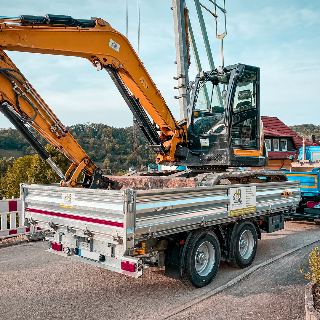 Eins steht fest: der HTK 145024 DL Basic hat einiges auf dem Kasten. Dank der unterschiedlich einstellbaren Kupplungshöhen eignet sich der Dreiseitenkipper für die verschiedensten Zugfahrzeuge. Das Abkippen geht schnell und punktgenau von der Hand. Dank der Durchladefunktion können auch lange Stückgüter optimal transportiert werden. Besonders flexibel einsatzbar wird der Anhänger zudem durch die verfügbaren Auffahrrampen. Damit dient er auch für den Transport von Baumaschinen und schwerem Gerät. Das alles sowie die hochwertige Verarbeitung machen den HTK 145024 DL Basic zu einem zuverlässigen Begleiter, der zeigt was er kann. Nicht nur im Garten- und Landschaftsbau bei R. Häußermann, sondern auch auf Baustellen, in Kieswerken oder wo er gerade gebraucht wird. Der Clou: viele unserer Schwerlastanhänger sind sofort bzw. kurzfristig verfügbar. Damit bleibt die Fahrzeugflotte am Laufen. Egal was kommt.