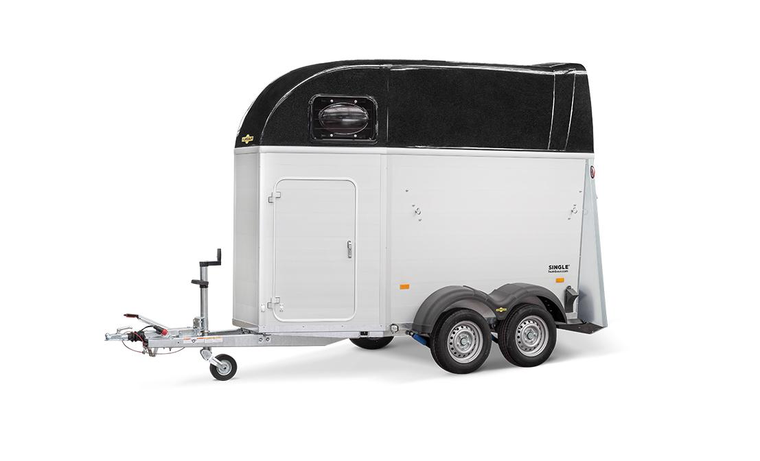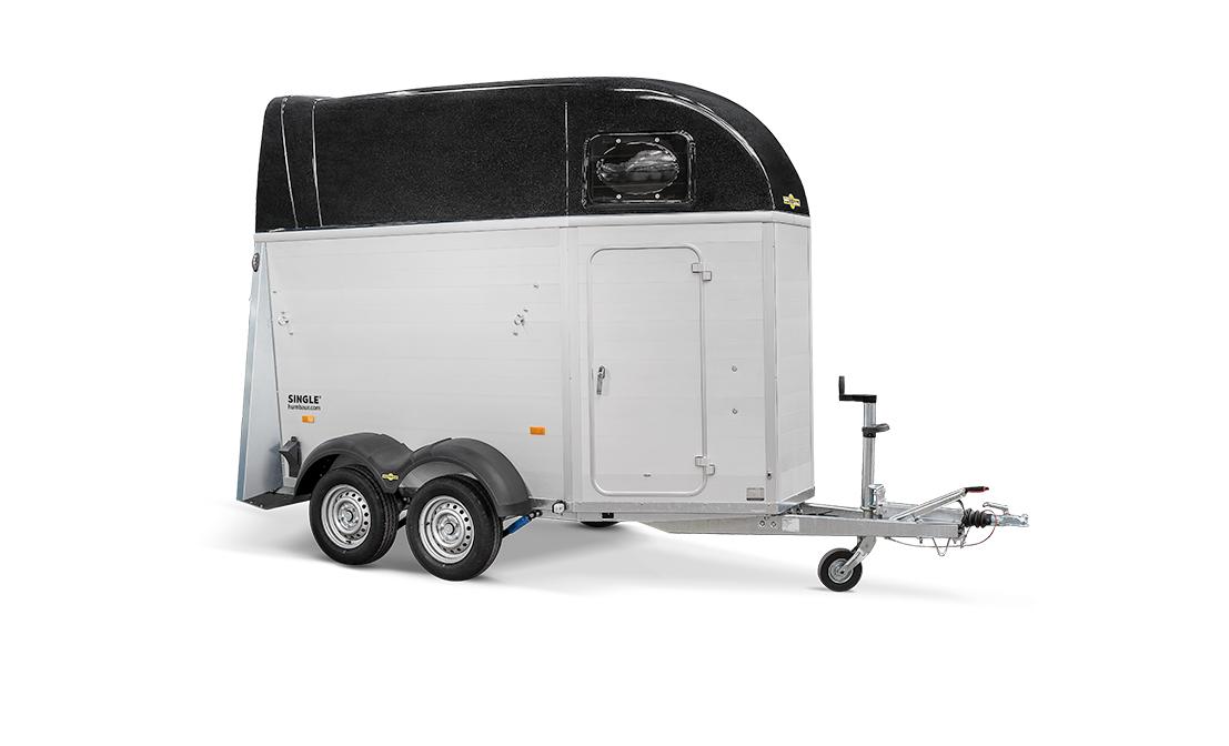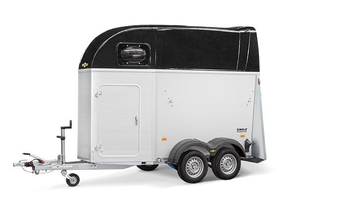 Merrie en veulen onderweg in een rollend huis van aluminium. De Single Alu heeft evenals de Single een thermisch verzinkt chassis. Zijn opbouw bestaat echter uit dubbelwandige, geëloxeerde aluminium profielen. Het massieve buitenframe en de achterscharnieren worden gemaakt van thermisch verzinkte staalplaat - ook hier is geen corrosie mogelijk. De trailer loopt zowel rustig als veilig. Uw paarden merken alleen dat zij ontspannen aankomen.